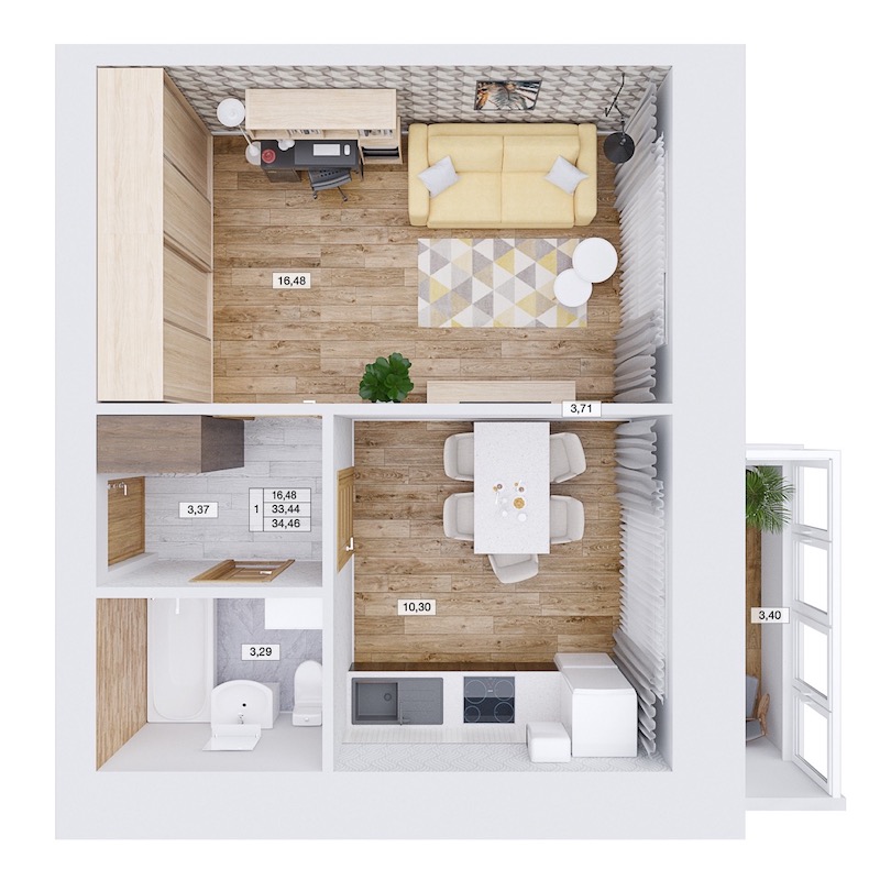 Однокомнатная квартира №298