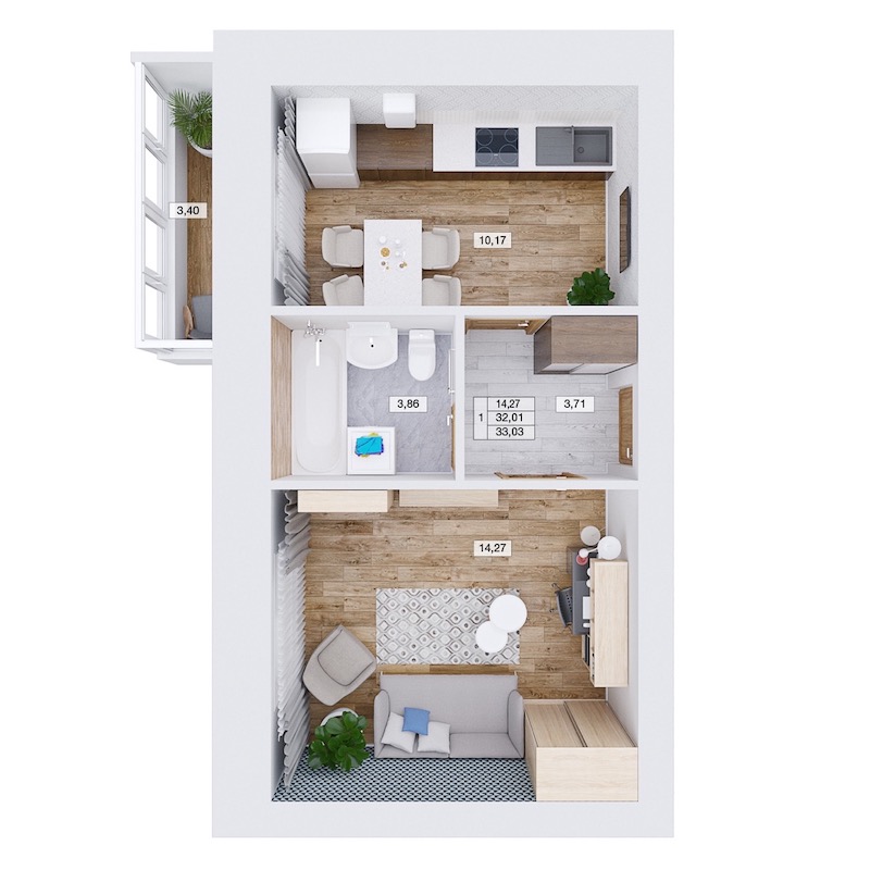 Однокомнатная квартира №310