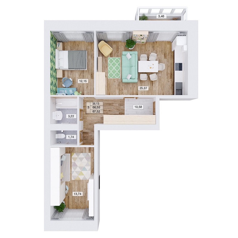 Трехкомнатная квартира №334